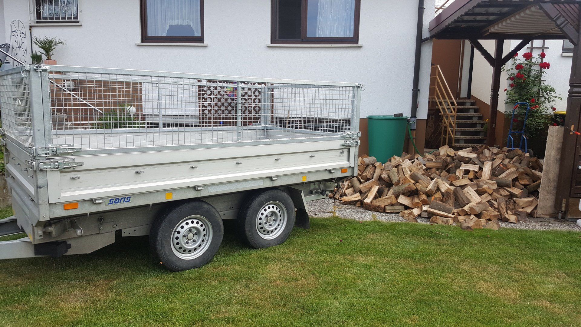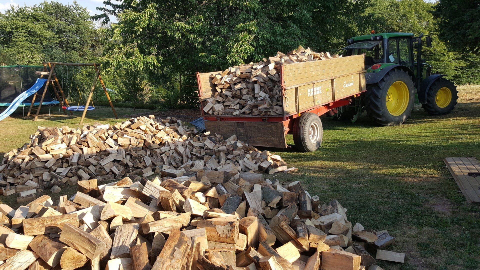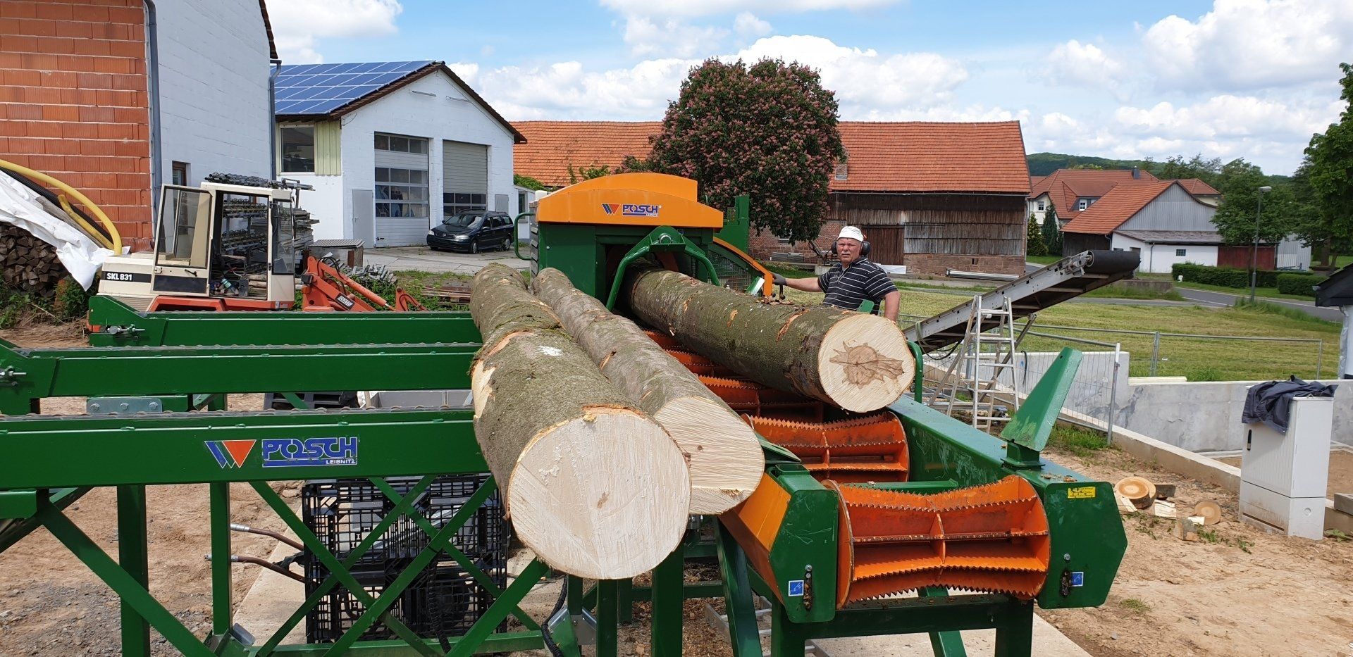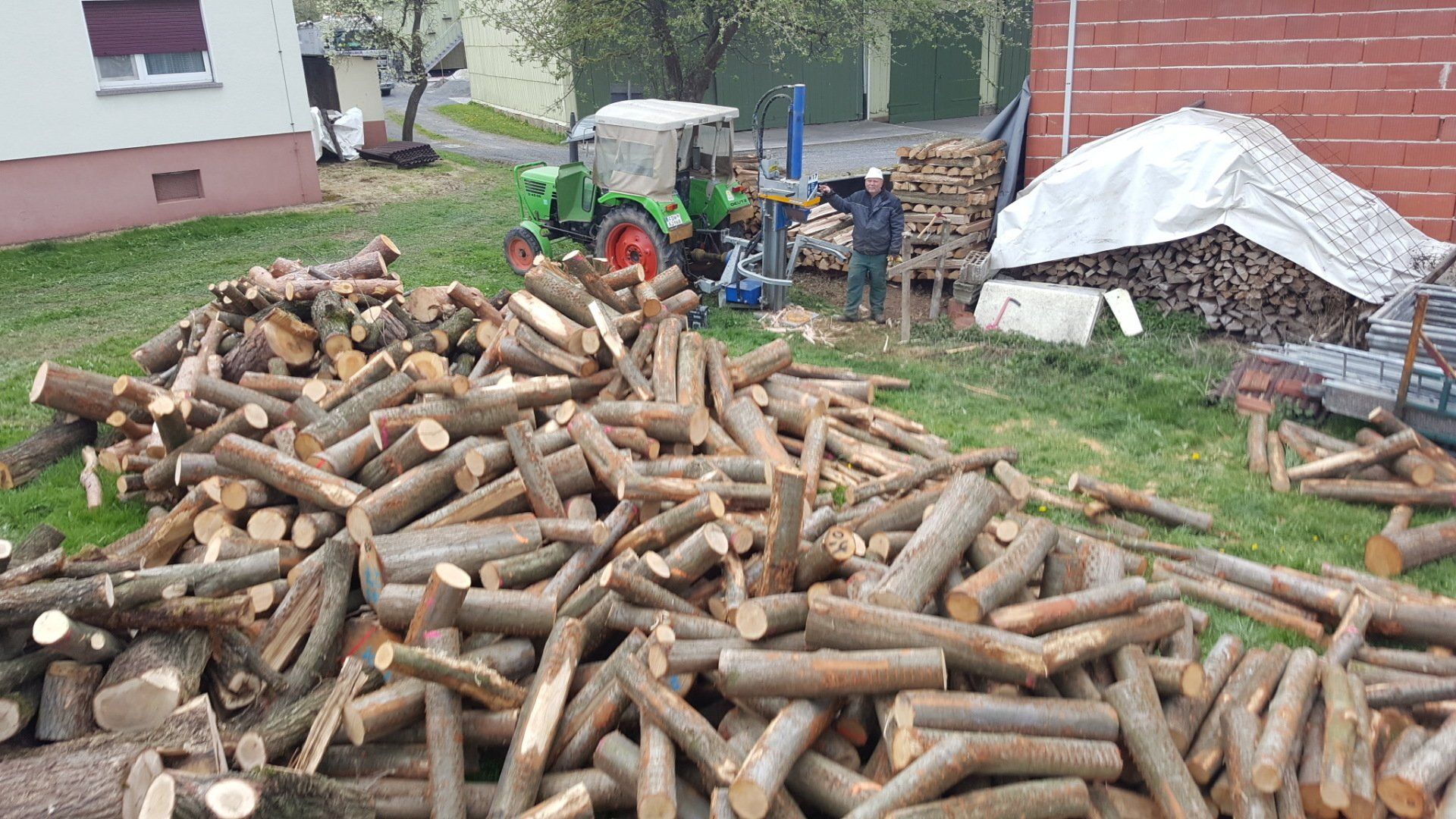 Bereits seit über 20 Jahren wurde durch die Vorgängergeneration Brennholz aus heimischer Region produziert. Wie hier Bilder aus dem Jahr 2014. Im selben Jahr bin ich (Lukas Weber) in die Brenhholzproduktion mit eingestiegen. Zu diesem Zeitpunkt wurde das Holz teilweise im Wald direkt geschlagen und selbst transportiert. Die Brennholzfertigung erfolgte mit einem Binderberger Stehendspalter und einer Posch-Wippsäge.